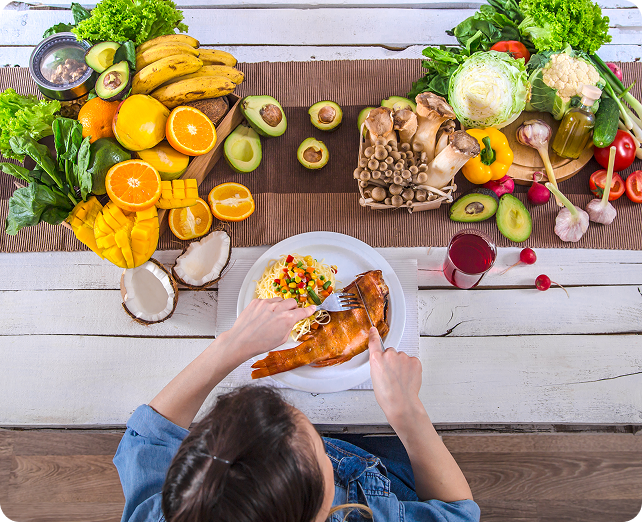 Antioxidant-rich fruits, vegetables, and proteins reduce oxidative stress.